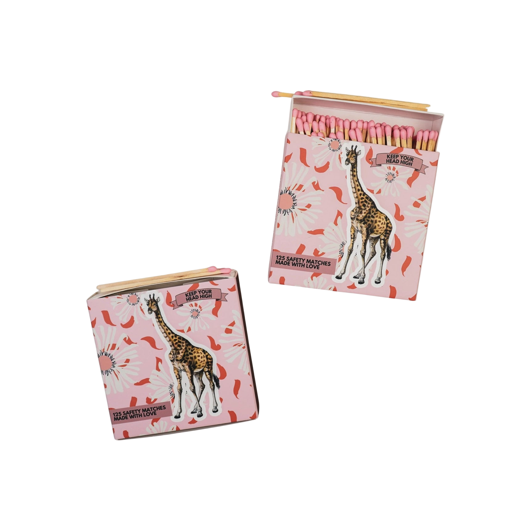 Breng magie en vrolijkheid naar je kaarsmomentjes met dit kleurrijke luciferdoosje! Versierd met een elegante giraf en een bloemenprint, en met de inspirerende boodschap " houd...